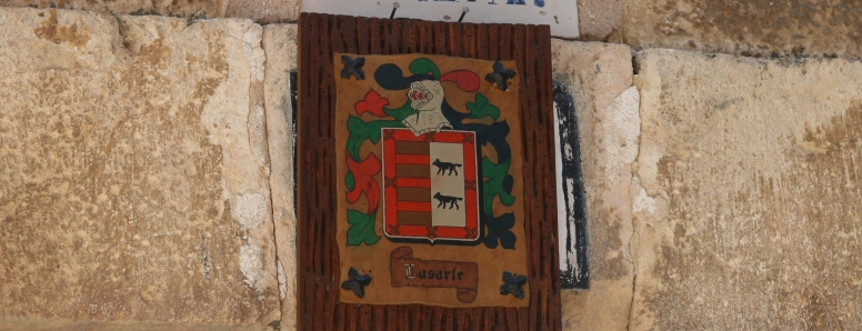Escudo: El escudo de este apellido se puede observar en al casa nº 4 de la calle Mayor. Cuarteado, en el 1ºpicota con cadenas en sus vértices. En el 2º cuarto nueve pamelas puestas de tres en tres. En el 3º cuadrante un árbol con dos lebreles atados a él y cuatro pamelas colocadas en las esquinas superiores dos a dos y superpuestas. En el 4º cuadrante dos lobos rampantes puestos uno sobre otro.