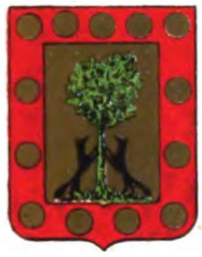 Sus armas son: Escudo de oro y un pino con dos lobos empinantes al mis mo ; bordura de gules y trece roeles de oro.